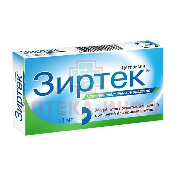 Зиртек таб. п/пл. об. 10мг №30 UCB Farchim/Швейцария/Aesica Pharmaceuticals/Италия