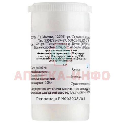 Антимониум тартарикум (Тартарус эметикус) С30 гран. 5г Доктор Н