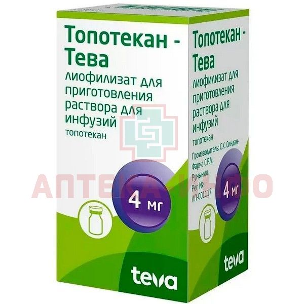 Топотекан-Тева фл.(лиоф. д/приг. р-ра д/инф.) 4мг №1 S.K.Syndan-Pharma S.r.L./Румыния