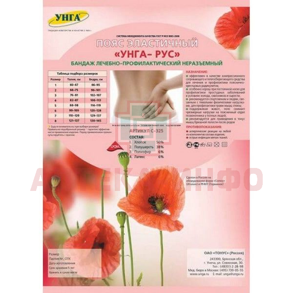 - Пояса эластичные УНГА-РУС используются для профилактики опущения внутренних органов брюшной полости и снятия нагрузки с пояснично-крестцового отдела позвоночника. Эффективны для профилактики различных травм при тяжелых физических нагрузках, а также для восстановления пациентов в посттравматической реабилитации.