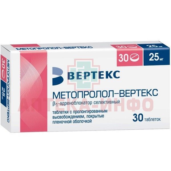 Метопролол-Вертекс таб. с пролонг. высв. п/пл. об. 25мг №30 Вертекс